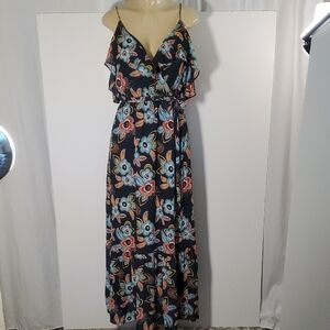New WT Loft Floral Cold Shoulder Floral Maxi Dress with Ruffle Detail Size S