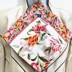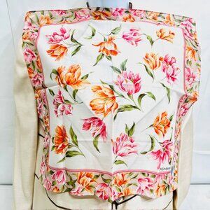 95. New Sticker on Yvest Saint Laurent YSL Women Mini Scarf handkerchief 19" x 19" . cotton, white green peach pink floral