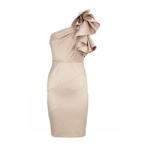 Elevate your evening wardrobe with the Karen Millen Women's Sculptural Frill Cocktail Party Dress. A stunning example of designer elegance, this dress features a sophisticated one-shoulder silhouette paired with a round neck, creating a balanced and flattering look for a variety of body types. The cream color offers a versatile palette that complements any skin tone, making it an ideal choice for spring and summer soirees. Crafted from premium polyester with a luxurious satin fabric type, the dress promises both comfort and durability. The short dress length is perfect for showcasing your style, whether you're attending a chic cocktail party or a sophisticated gathering. Fully lined for quality and designed to impress, this dress is a must-have addition to your fashion collection.