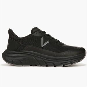 Experience the perfect blend of style and comfort with Vionic's athletic shoes, featuring a sleek black and gray design. These shoes boast a chunky sole for added support and a rugged outsole for excellent traction, making them ideal for both casual outings and athletic activities.
