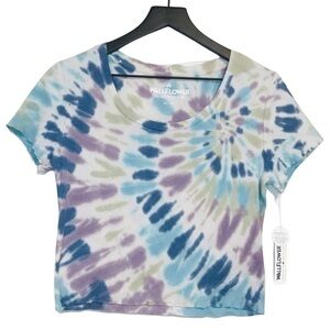 New! Wallflower Bohemian Tie Dye Retro Hippie Cropped Lettuce Hem Top