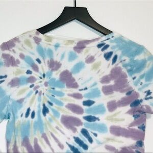 Wallflower Bohemian Tie Dye Retro Hippie Cropped Lettuce Hem Top.
