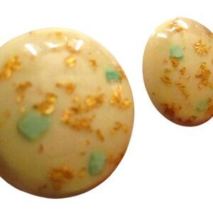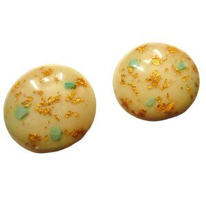 New Wave Valley Girl Vintage Gold Flake & Mint Green Speckled Clip-On Earrings