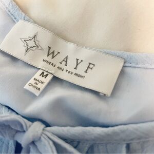 New Wayf Nordstrom Pastel Blue Crepe Blouson Sleeve Bubble Hem Cropped Blouse M