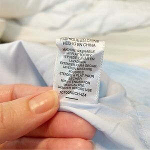 Brand new with tags. Pastel cornflower baby blue blouse with long flowy blouson sleeve. Gathered cropped bubble hemline. Tie front at split v-neck neckline.