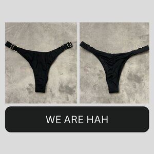 New! We Are HAH Black High Cut Adjustable String Thong Bikini Bottom