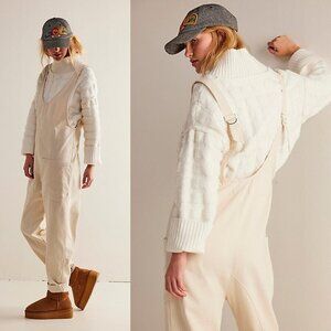 We The Free x Free People Cream Denim High Roller Jumpsuit Size L
