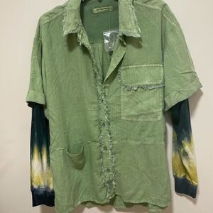 NWOT We The Free San Juan Twitter Green Fated edge layered Tie Dye Long Sleeves blouse size S