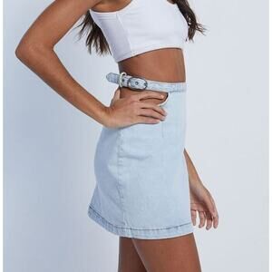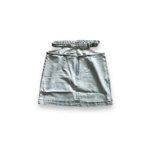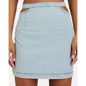 New WeWoreWhat Cut Out Mini Skirt Denim Super Light Blue Comfort Indigo Wash XS