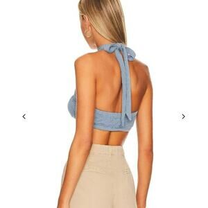 New WeWoreWhat Tie Halter Bra Top Wide Rib Storm Blue Summertime Size Small