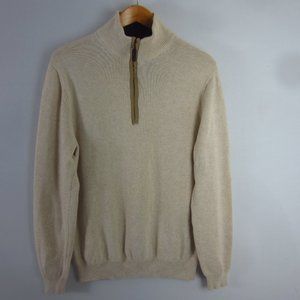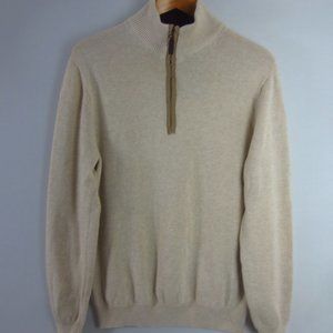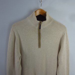 New Weatherproof Mens M Oatmeal Beige Brown Cotton 1/4 Zip LS Sweater NWT $75