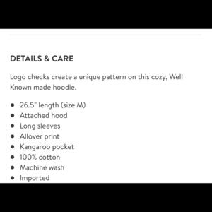 New! Well Known Studios Men's Size Medium The Crosby Checkered Pullover Hoodie.