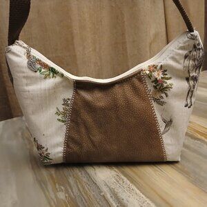New Western Deer Top handle Shoulder Bag Purse Brown Ivory Crescent Baguette