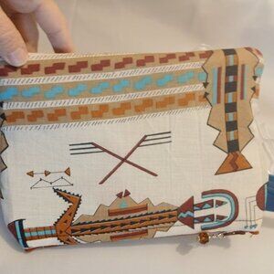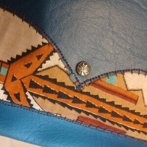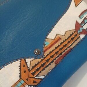New Western theme Faux leather Clutch Wristlet Brown Teal wallet envelope bag