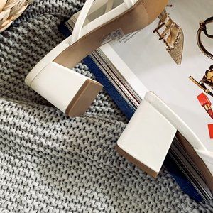 New🔥 White Crisscross Strap Low Block Heel Slide Sandal Square Open Toe Slip-On