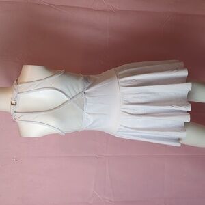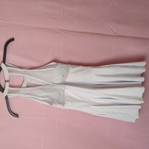 New White Fishnet Insert High Neck Ruched One Piece Swimsuit with Skirt Medium