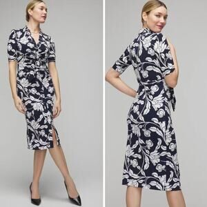 New! White House Black Market Short Sleeve Matte Jersey Ruched Tie-Front Midi Dress, women size 6