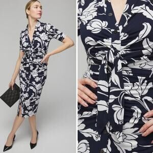 New! White House Black Market Matte Jersey Ruched Tie-Front Midi Dress, size 6