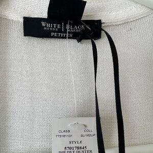 New with tags. White House black market dip dye duster sweater. White transitions into ombré blue. Open front design. Size petite xsmall. Super lightweight and soft.