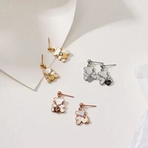 New White Shell and Color Rose Gold Bear with Heart Earrings