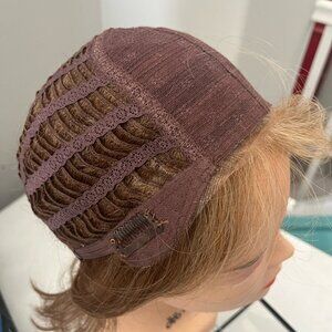 New (never worn) wig by Hairdo by Hairuwear in color R11S+ Glazed Mocha (Medium Brown/Gold) Tousled Bob Wig, Average Cap, 18H234. I have hand sewn in hair clips for a more secure fit. They can be removed. Comes in the original box with tags.