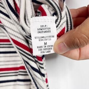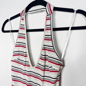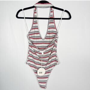 New Wild Honey M White Red Black Striped Halter Ribbed Low Back Bodysuit Cotton
