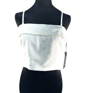 New Wildfox Odessa Cropped Top Beaded Spaghetti Straps Linen Blend White Size L