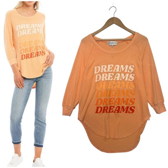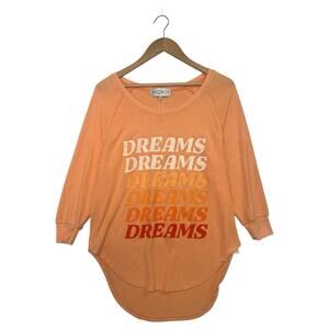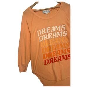 New Wildfox Top Womens Small Orange Dream Shaley Raglan Round Neck Cozy Beach