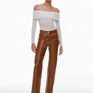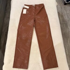 New! Wilfred by Aritzia The Melina Pant Vegan Leather Patina Brown 45295