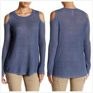New Willow & Clay Cold Shoulder Knit Sweater Blue Womens Size S Top