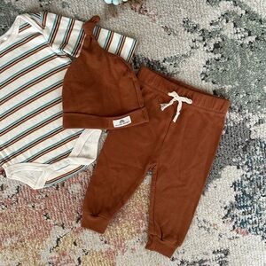 New Willow + Whimsy Baby Boy Organic 3-Piece Set Hat, Joggers, Striped long sleeve shirt size 3-6 months baby boy