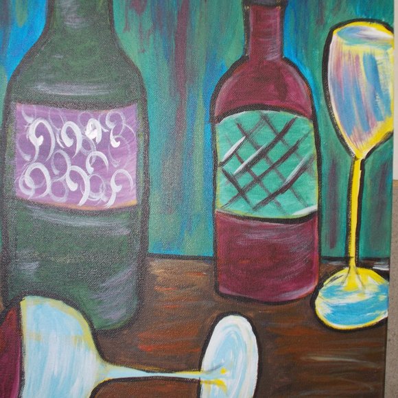"WINE COUNTRY" IMPRESSIONISTIC ACRYLIC PAINTING. HAND PAINTED BY US ARTIST. PAINTED ON 16"X20" STRETCHED CANVAS.