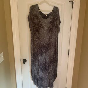 Excellent condition. Worn a couple times. Wishlist camo maxi dress (monster gray) with pockets and split bottom that can be tied. Super soft and comfy. Size M/L. Fits oversized. Approx measurement across chest 26” length 55”