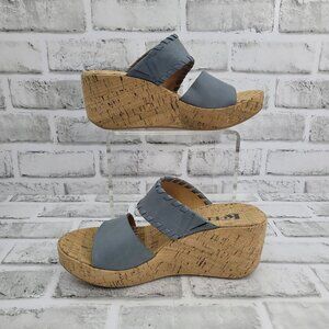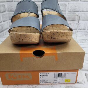 New With Box Korks Kendri Cork Wedge Leather Sandals Blue Denim Size 7