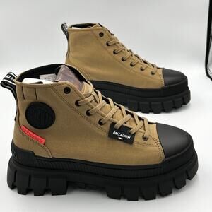 Step out in style with these brand new Palladium Revolt Hi Tx Boots! These boots come in the original box and are ready for a new adventure.