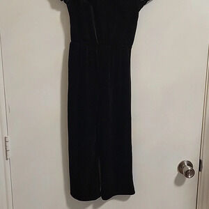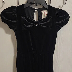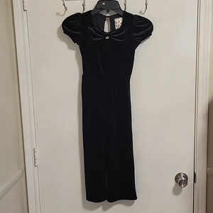 New With Tag Girls Black Size 7 One Piece Romper Short Sleeve Bow Velor Soft and Comfortable