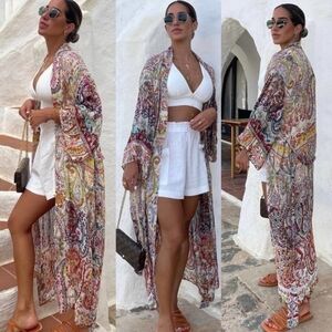New With Tag Zara Long Pasley-Style Printed Belted Kimono Blogger Fav NWT Medium