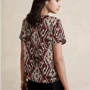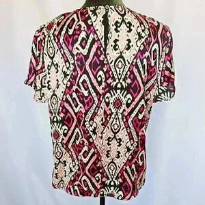 Dress up any outfit with this upscale t-shirt from Banana Republic, featuring a fun tribal print in pink, black and ivory!