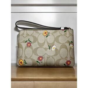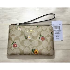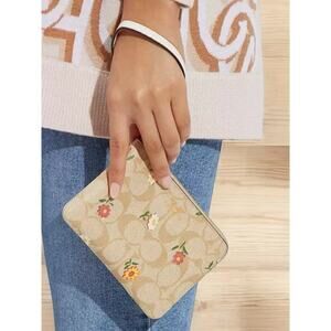 This New With Tags Coach CH478 Signature Ditsy Corner Zip Wallet from 2023 is the perfect Coach accessory! Featuring coated canvas in multi light with nostalgic ditsy print (floral), this wallet is both stylish and functional and can be used as a wristlet. If you love Coach design and quality, this is a must have for your collection!