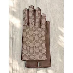 New With Tags Coach CO104 Signature Jacquard and Leather Tech Gloves Size - 6 ½
