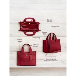 This New With Tags Coach CZ430 New Year Snake Cargo Tote 26 Bag is the cutest little bag! Featuring canvas in the Red/Brass colorway with the Year of the Snake Coach logo, this little cargo bag is both super stylish and functional with an adjustable/removable long strap for hand, shoulder or crossbody wear. If you love the style and quality of Coach, you need this in your collection!