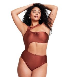 Copper Brown One Shoulder Cutout High Leg Cheeky