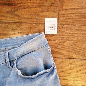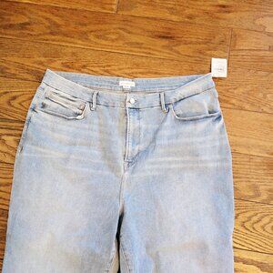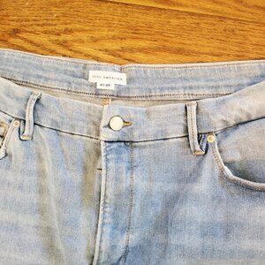 Excellent condition no flaws brand new never worn with tags attached Good American skinnyish fit light blue jeans. Legs look extra long. The size is 20-26...Good American's size 20-26 is a "size range" designed for their "Always Fits" denim, a line with a one-size-fits-four approach that adapts to a body's changes for a guaranteed fit across multiple traditional sizes. This technology uses limitlessly stretchy fabric to mold to your body, meaning a single pair of "20-26" jeans is meant to fit someone who would typically wear sizes 20, 22, 24, or 26. Inseam is 28"