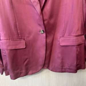 This J. Crew blazer in a soft pink hue offers a relaxed fit with a silky, flowing fabric that exudes elegance. Its classic notched lapels and full-length sleeves make it a versatile addition to any wardrobe, perfect for both casual and polished looks.