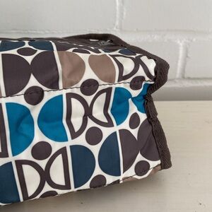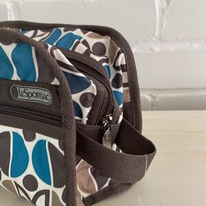 New With Tags LeSportsac Blue/Brown Patterned Cosmetic Travel Overnight Pouch