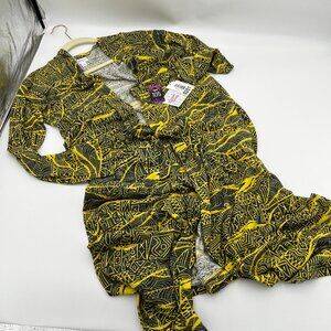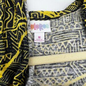 New With Tags LuLaRoe Sarah Cardigan Duster Medium (8-12), geometric black and yellow pattern. The Sarah cardigan features a cropped long sleeve for easy movement, a flattering silhouette and pockets!
