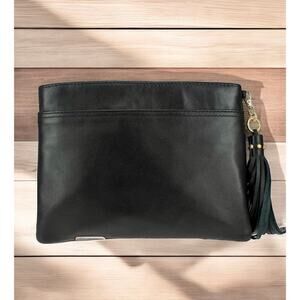 Exterior – Hand beading, antique bronze hardware and chain link strap, removable black leather fringe piece, external open slip back pocket and top zippered closure. Includes Mary Frances emblem, dust bag, certificate of authenticity and extra beads.