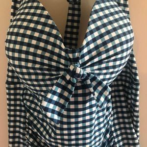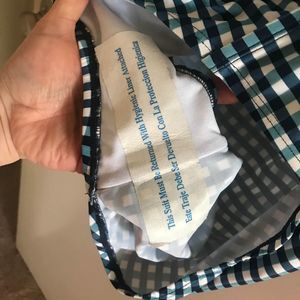 New With Tags Merona Blue Navy Teal White Checkered Swimsuit Bathing Suit XL