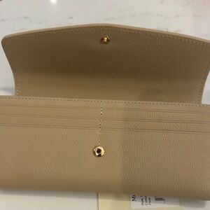 NWT This sophisticated wallet is crafted from high-quality Italian tan leather, offering a sleek and minimalist design perfect for organizing your essentials. Its size and smooth finish make it a stylish addition to any collection, embodying the luxury and elegance associated with Moncrief . Plenty of slots for credit cards & Id. Two zippered compartments.