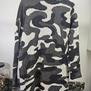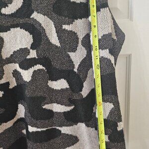 New With Tags Nine West Black Cream And Metallic Gray Camo Long Cardigan Size Me